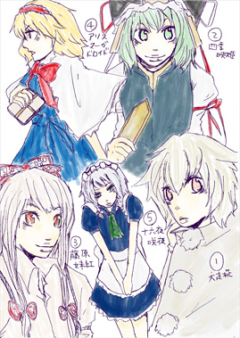 椛・映姫様・妹紅たん・アリス・咲夜さんの順でベスト5。